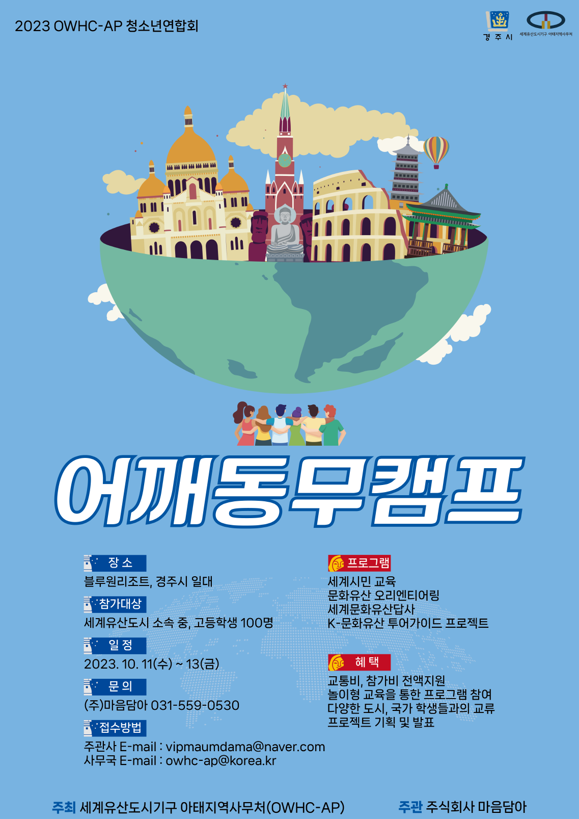 2025 OWHC-AP ... 마감일 - Read More 2024 OWHC-AP ... 마감일 - Read More 2024 OWHC-AP ... 마감일 - Read More 2024 OWHC-AP ... 마감일 - Read More 2024 OWHC-AP ... 마감일 - Read More 제4차 세계유산도시기구 ... 마감일 - Read More 제4차 세계유산도시기구 ... 마감일 - Read More [수원시] 2023 수원... 마감일 - Read More 2023 OWHC-AP ... 마감일 - Read More 2023 OWHC-AP ... 마감일 - Read More 2023 OWHC-AP ... 마감일 - Read More OWHC-AP 세계유산도... 마감일 - Read More 2023 OWHC-AP ... 마감일 - Read More 헤리토폴리스 학술대회 개... 마감일 - Read More 세계유산도시기구 메타버스... 마감일 - Read More 2023 OWHC-AP ... 마감일 - Read More 세계유산도시기구 메타버스... 마감일 - Read More H!GH HERITAGE... 마감일 - Read More 2022 OWHC-AP ... 마감일 - Read More 2022 OWHC-AP ... 마감일 - Read More 1 / 2 / 3 / 4 /